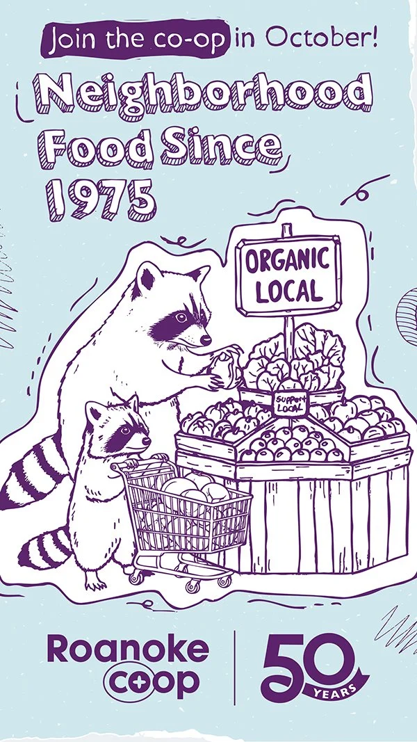 A defining characteristic of Roanoke Co+op is that any shopper can become an owner. This enables the store to directly meet the needs of its owners, as the Co-op is run by a democratically elected Board of Directors. Because we are the owners of our store, we can quickly and effectively enact the policies that make the most sense for our shoppers and our community.